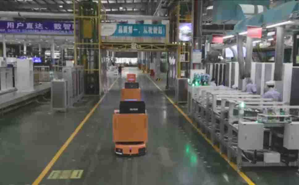为车载冰箱物流配送打造的智能解决方案,,,包含产中物流通过潜伏举升AMR搬运至线边,,产后成品物流智能仓储,,,流程包含产中物流智能齐套入库,,,线边安灯叫料AMR智能配送至线边,,成品入库、、、出库,,通过无人堆高车机器人,,智能仓储管理替代人工作业管理,,实现更高存储、、更高效率、、、更具柔性化的解决方案。。。